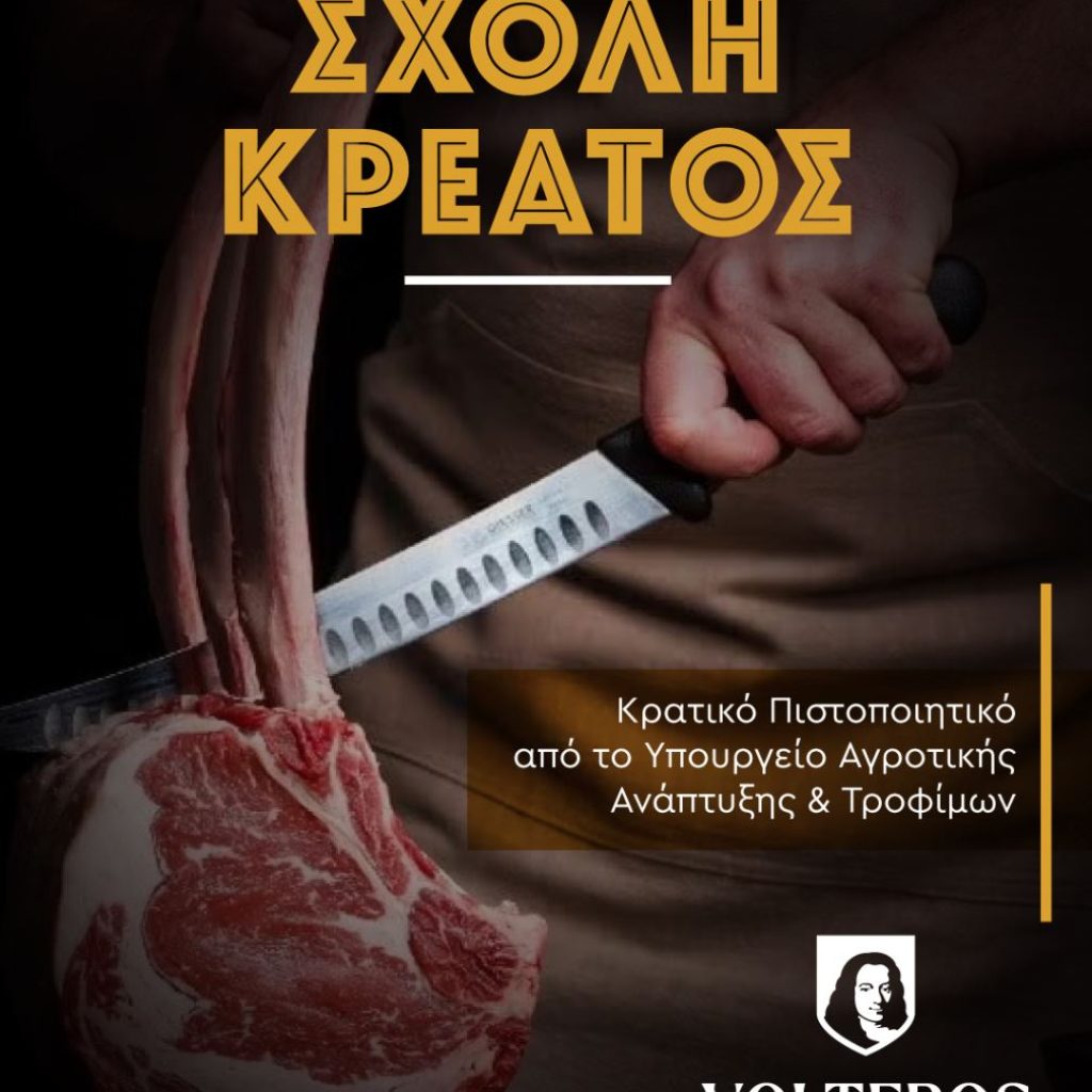 Κάνε επάγγελμα τη γνώση γύρω από το κρέας. Στις Ανώτερες Σχολές VOLTEROS προσφέρουμε ένα ταχύρρυθμο, απολύτως πρακτικό πρόγραμμα που οδηγεί στην απόκτηση άδειας άσκησης επαγγέλματος κρεοπώλη ή/και στην έναρξη δικής σου επιχείρησης.