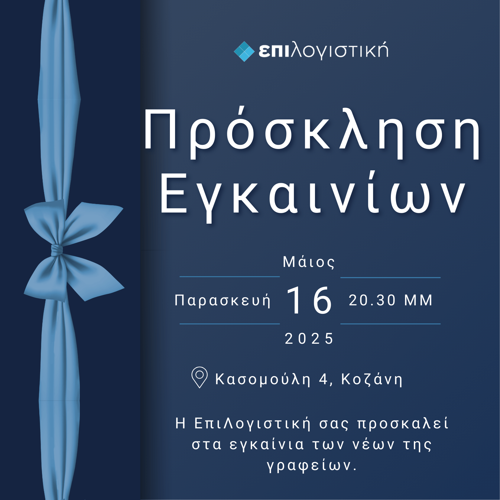<!-- wp:gallery {"linkTo":"none"} --> <figure class="wp-block-gallery has-nested-images columns-default is-cropped"><!-- wp:image {"id":903574,"sizeSlug":"large","linkDestination":"none"} --> <figure class="wp-block-image size-large"><img src="https://kozanimedia.gr/wp-content/uploads/2025/05/ΠΡΟΣΚΛΗΣΗ-ΕΓΚΑΙΝΙΩΝ-ΕΠΙ-ΛΟΓΙΣΤΙΚΗ-ΙΚΕ-1024x1024.png" alt="" class="wp-image-903574"/></figure> <!-- /wp:image --></figure> <!-- /wp:gallery -->