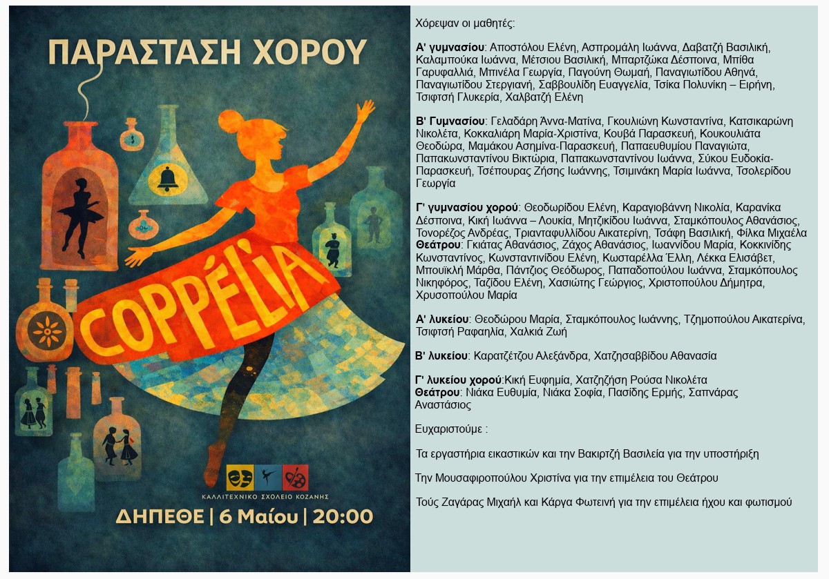 Τελικές εκδηλώσεις χορού του Καλλιτεχνικού Γυμνασίου με Λ.Τ. Κοζάνης – Δείτε αναλυτικά το πρόγραμμα