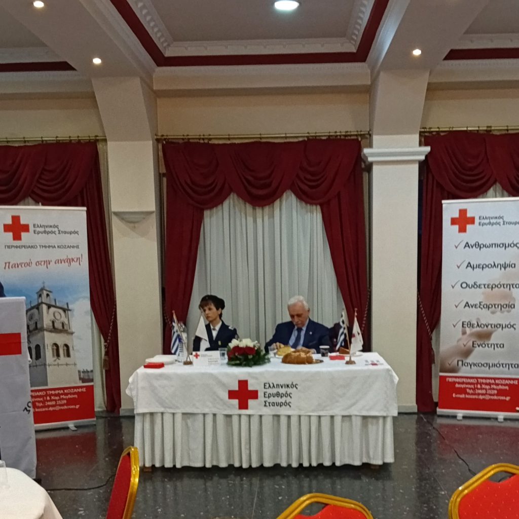 Το Περιφερειακό Τμήμα του Ελληνικού Ερυθρού Σταυρού Κοζάνης ευχαριστεί θερμά τον Πρόεδρο του Ελληνικού Ερυθρού Σταυρού Dr. Αντώνιο Αυγερινό για την παρουσία του, καθώς και όλους όσοι συμμετείχαν και στηρίζουν διαχρονικά το ανθρωπιστικό έργο του Ερυθρού Σταυρού. Ιδιαιτέρως δε ευχαριστεί τον απερχόμενο Διοικητή της 9ης Μ/Π Ταξιαρχίας Πεζικού, Ταξίαρχο κ. Αναστάσιο Βασιλείου για τη δωρεάν παραχώρηση της αίθουσας «Μέγας Αλέξανδρος» της Λέσχης Αξιωματικών Φρουράς Κοζάνης.