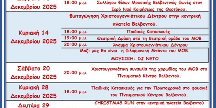 Το πρόγραμμα των εορταστικών εκδηλώσεων στο Βελβεντό