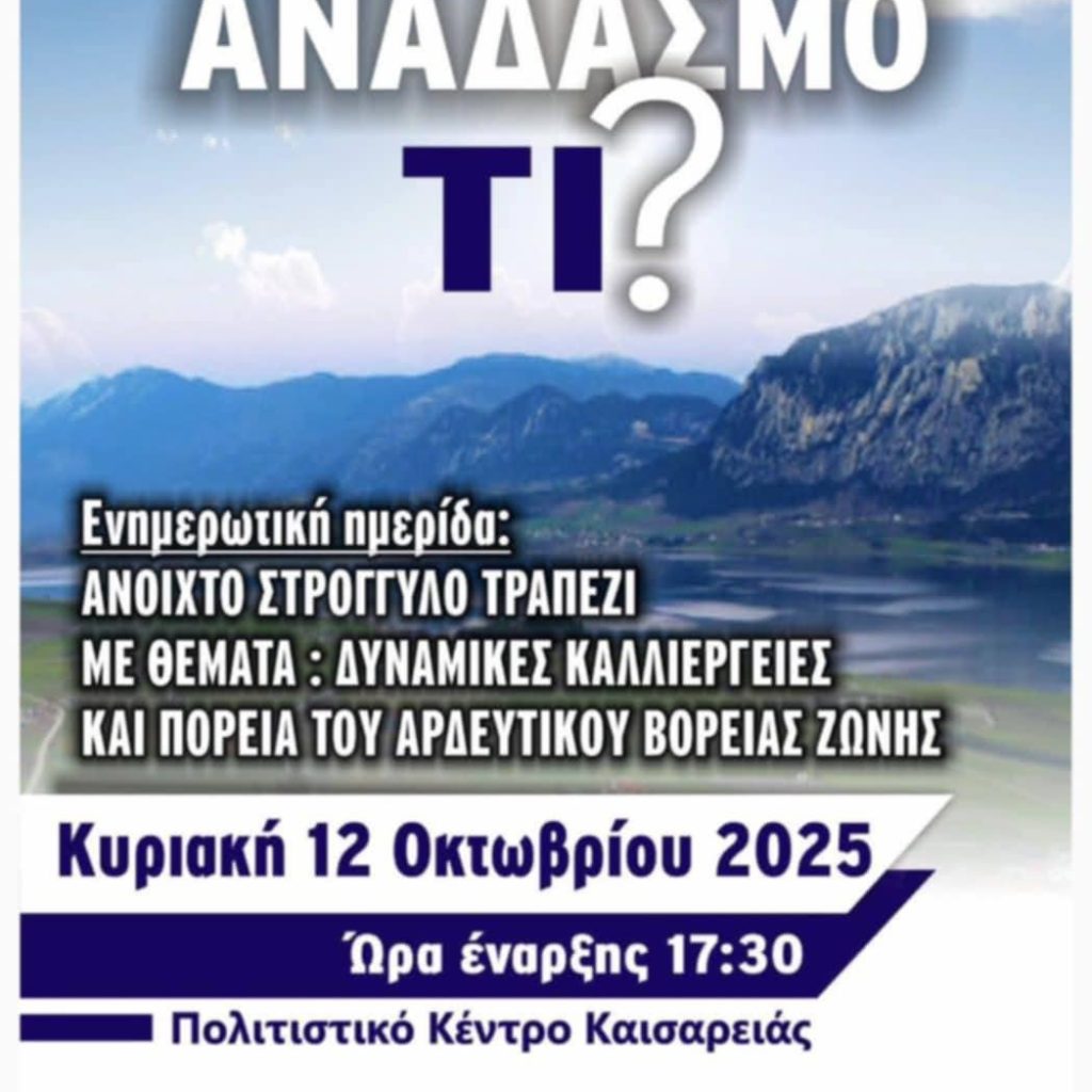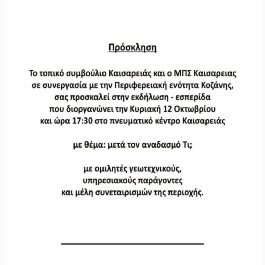 Το τοπικό συμβούλιο και ο ΜΠΣ Καισαρείας διοργανώνει εσπερίδα με θέμα “μετά τον αναδασμό Τί;”
