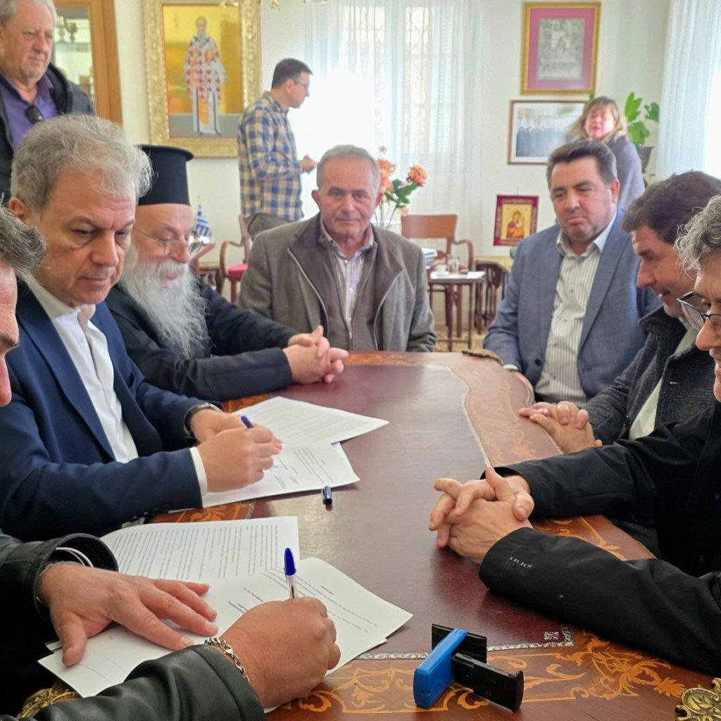 Υπογράφηκε σήμερα Δευτέρα 9 Μαρτίου 2026 στο Επισκοπείο της Ιεράς Μητρόπολις Γρεβενών, η σύμβαση για την υλοποίηση του έργου «Εγκατάστασης δικτύου ενεργειακής πυροπροστασίας στο Ίδρυμα «Άγιος Αχίλλειος», μεταξύ του Περιφερειάρχη της ΠΔΜ Γεωργίου Αμανατίδη και του εκπροσώπου της αναδόχου εταιρίας, παρουσία του Μητροπολίτη Γρεβενών κ.κ. Δαβίδ, του Βουλευτή Γρεβενών κ. Αθανάσιο Σταυρόπουλο, του Αντιπεριφερειάρχη Γρεβενών κ. Ιωάννη Τσακνάκη καθώς και των Περιφερειακών Συμβούλων κ. Ιωάννη Παναγιωτίδη και Γεώργιο Γεωργίτση.