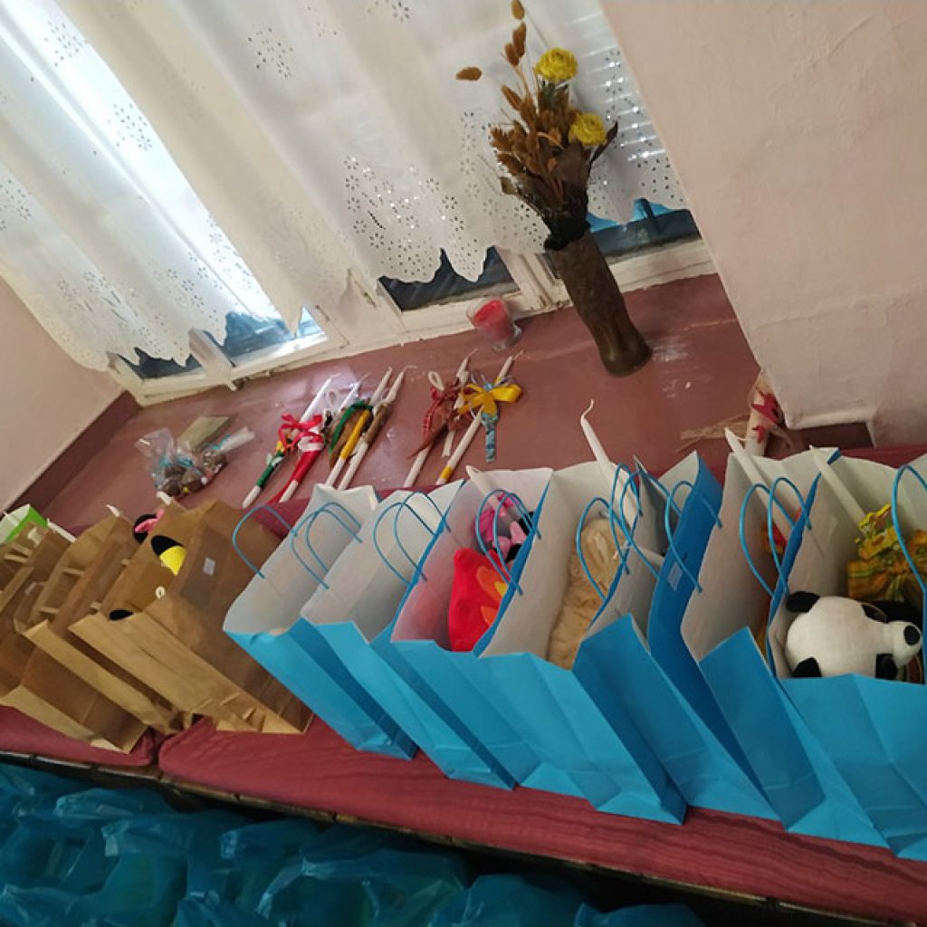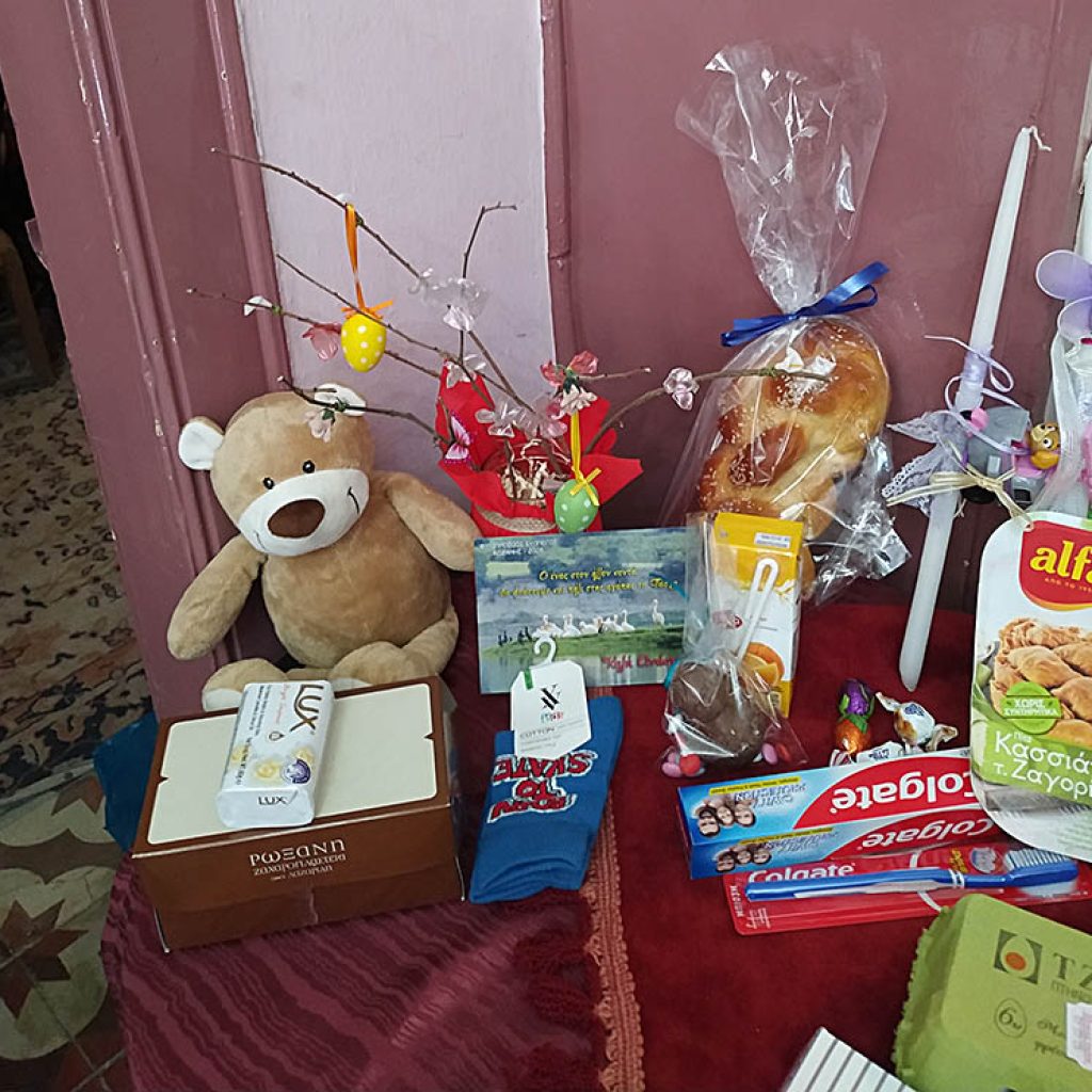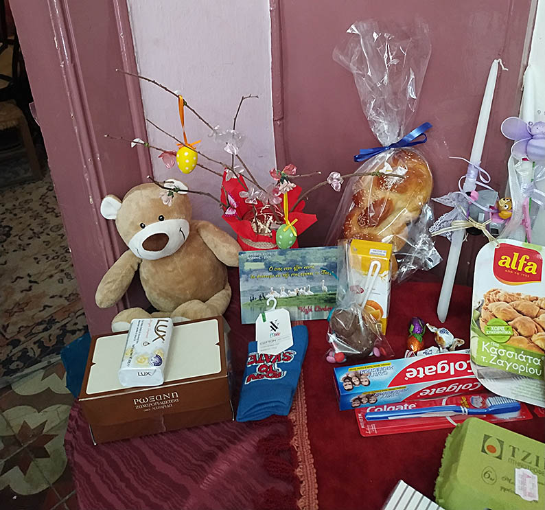 Συγκεντρώθηκαν για κάθε δέμα, 32 διαφορετικά είδη διατροφής και 30 γιορτινές λαμπάδες για τα παιδιά αυτών των οικογενειών, συνοδευόμενες με πασχαλινά δώρα.