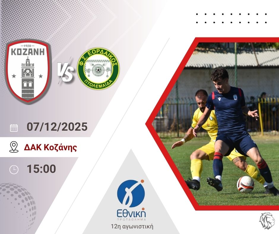 Το Φ.Σ. Κοζάνη απευθύνει κάλεσμα σε όλο τον φίλαθλο κόσμο της πόλης ενόψει του μεγάλου και απόλυτου ντέρμπι με τον Εορδαϊκό, την Κυριακή στο ΔΑΚ Κοζάνης, στις 15:00.