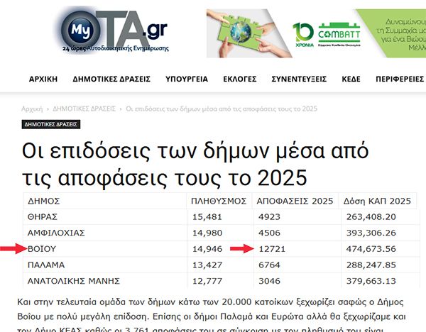 Το δημοσίευμα του my ota.gr που αναφέρεται στις επιδόσεις των Δήμων σε σχέση με τον αριθμό των αποφάσεων που έχουν ληφθεί εντός του 2025, έρχεται σαν μια μικρή αναγνώριση των προσπαθειών που καταβάλαμε ώστε να οδηγήσουμε τον Δήμο μας ακόμη πιο ψηλά.