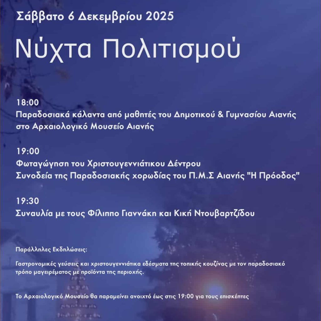 Χριστούγεννα στην Αιανή & Νύχτα Πολιτισμού – Δείτε αναλυτικά το πρόγραμμα