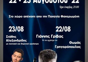 Σας ανακοινώνουμε ότι η μουσική παράσταση «Αυγουστιάτικη Πανσέληνος» που είχε προγραμματιστεί για την Παρασκευή 12 Αυγούστου 2022, και ώρα 20:30 στον αρχαιολογικό χώρο Πετρών, στο πλαίσιο του ετήσιου εορτασμού της ...