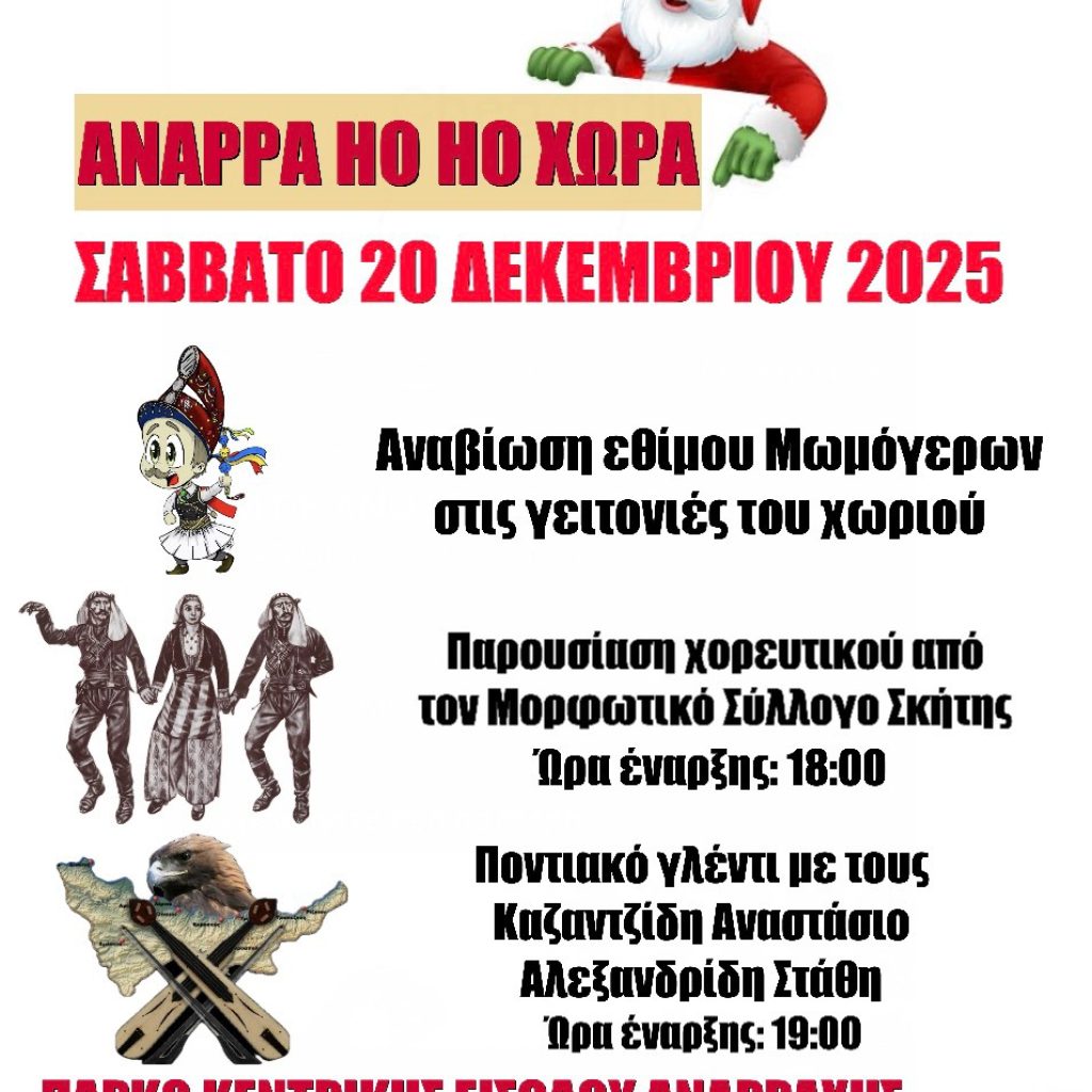 Η ΑΝΑΡΡΑ HO HO ΧΩΡΑ ανοίγει επίσημα τις πύλες της και προσκαλεί μικρούς και μεγάλους σε ένα τετραήμερο γεμάτο παράδοση, μουσική, και γιορτινή ατμόσφαιρα. Από την Πέμπτη 18 έως και την Κυριακή 21 Δεκεμβρίου, η είσοδος της Αναρράχης μεταμορφώνεται σε έναν ζωντανό χριστουγεννιάτικο κόμβο με πλήθος δράσεων.
