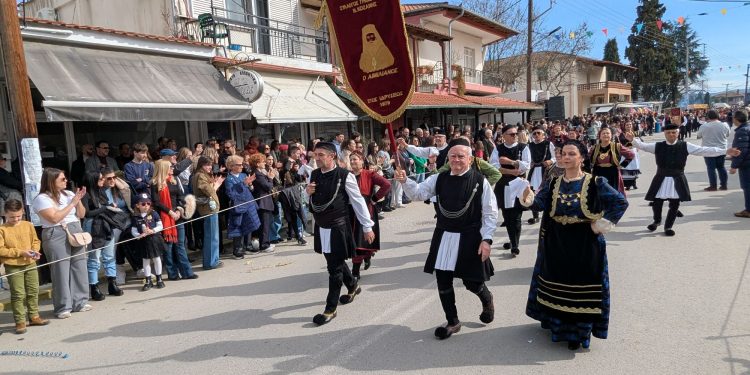 Το χορευτικό τμήμα του Συλλόγου Γρεβενιωτών Κοζάνης στο καρναβάλι της Μελίκης