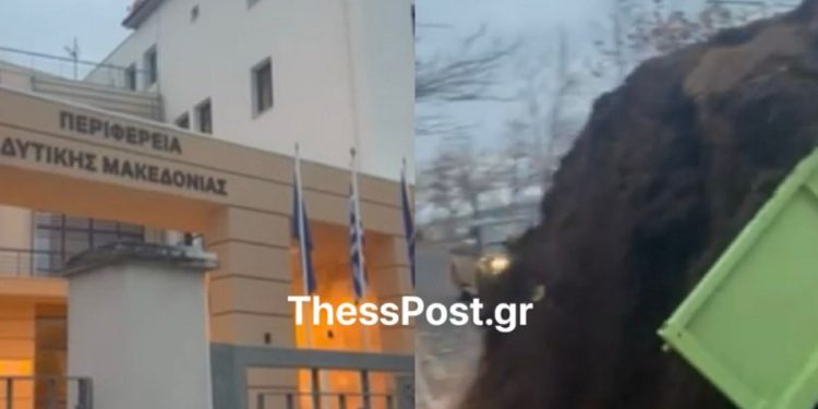 Aγρότες έριξαν 4 τόνους κοπριά έξω από την Περιφέρεια Δυτικής Μακεδονίας-Bίντεο