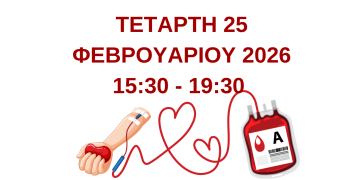 Read moreDetailsΤην Τετάρτη 25 Φεβρουαρίου 2026, από 15:30 έως 19:30, σας προσκαλούμε να συμμετάσχετε στην εθελοντική αιμοδοσία που θα πραγματοποιηθεί στα...
