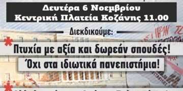 Συμμετοχή του ΦΣ ΗΜΜΥ Κοζάνης στο μαθητικό φοιτητικό συλλαλητήριο τη Δευτέρα 6 Νοεμβρίου στην κεντρική πλατεία της Κοζάνης