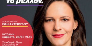 Read moreDetailsΤο Σάββατο, 26 Αυγούστου, στις 7.30μμ, στο ξενοδοχείο «Έλενα» στην Κοζάνη θα παρευρεθεί η υποψήφια Πρόεδρος του ΣΥΡΙΖΑ-ΠΣ Έφη Αχτσιόγλου.