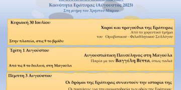 Read moreDetailsΕΡΑΤΥΡΑ η αυγουστιάτικη ΠΑΝΣΕΛΗΝΟΣ ΣΤΗ ΜΑΓΟΥΛΑ φέτος ξανά με τον Βαγγέλη Βέττα Από τις 8 το δειλινό έχουμε...