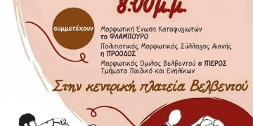 Read moreDetailsΟ Μορφωτικός Όμιλος Βελβεντού διοργανώνει Συνάντηση Χορευτικών, την Κυριακή 2 Ιουνίου στις 8:00 το βράδυ στην κεντρική πλατεία Βελβεντού, με...