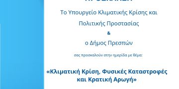 Read moreDetailsΤο Υπουργείο Κλιματικής Κρίσης και Πολιτικής Προστασίας και ο Δήμος Πρεσπών διοργανώνουν ημερίδα με θέμα: «Κλιματική Κρίση, Φυσικές Καταστροφές και Κρατική...