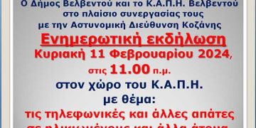 Από τον ΔΕΔΔΗΕ Α.Ε./Περιοχή Κοζάνης ανακοινώνεται ότι : Την Κυριακή 11-02-2024 θα γίνει διακοπή ηλεκτρικού ρεύματος από ώρα 08:00 έως...