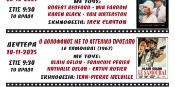 Read moreDetailsΟ Φιλοπρόοδος Σύλλογος Κοζάνης συνεχίζει τις χειμερινές προβολές του, αυτή τη Δευτέρα 10 Νοεμβρίου 2025 στην επάνω αίθουσα του κινηματοθέατρου «Ολύμπιον», στις 9:30 το βράδυ, παρουσιάζοντας ένα υπέροχο φιλμ νουάρ...