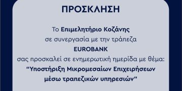 Στο πλαίσιο της συνεχούς στήριξης των Μικρομεσαίων Επιχειρήσεων της περιοχής μας, το Επιμελητήριο Κοζάνης σε συνεργασία με την EUROBANK διοργανώνει ενημερωτική ημερίδα με θέμα: «Υποστήριξη Μικρομεσαίων Επιχειρήσεων μέσω Τραπεζικών Υπηρεσιών».Η...
