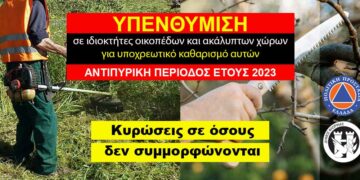 Δήμος Φλώρινας:Υπενθύμιση υποχρέωσης καθαρισμού οικοπέδων και ακάλυπτων χώρων από ιδιώτες για την πρόληψη των πυρκαγιώνκατά την αντιπυρική περίοδο έτους 2023