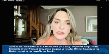 Ομιλία της Βουλευτή Φλώρινας και Αναπληρώτριας Τομεάρχη Περιβάλλοντος και Ενέργειας της Κ.Ο. του ΣΥΡΙΖΑ- ΠΣ Πέτης Πέρκα στην Ενημέρωση των μελών της Επιτροπής Παραγωγής και Εμπορίου από τον Υπουργό Επικρατείας,...