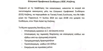 Read moreDetailsΠρόσκληση σε Γενική Συνέλευση του Ελληνικού Ορειβατικού Συνδέσμου ( ΕΟΣ ) Κοζάνης Σύμφωνα με τις προβλέψεις του καταστατικού, καλούνται τα ενεργά και τακτοποιημένα οικονομικώς μέλη του Ελληνικού Ορειβατικού Συνδέσμου (...