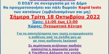 Τη Δευτέρα 17 Οκτωβρίου 2022, κατά τις βραδινές ώρες από 21:30 έως τις πρωινές ώρες της επομένης μέρας 05:00 θα εκτελεστούν εργασίες φυτοπροστασίας σε δένδρα από το Τμήμα Πρασίνου και...