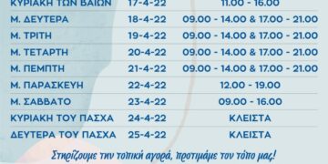 Read moreDetailsΟ Εμπορικός Σύλλογος Κοζάνης ενημερώνει εργαζόμενους και καταναλωτικό κοινό το εορταστικό Πασχαλινό ωράριο των καταστημάτων. Με τις δύσκολες εποχές που επικρατούν, ευχόμαστε σε όλους τους συναδέλφους υπομονή και υγεία και...
