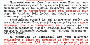 Read moreDetailsΠαρακαλούνται οι ιδιοκτήτες των οικοπέδων και των λοιπών ακάλυπτων χώρων & αγρών, που βρίσκονται εντός των οικοδομικών ορίων του οικισμού Βελβεντού και των λοιπών οικισμών του να προχωρήσουν άμεσα στον...