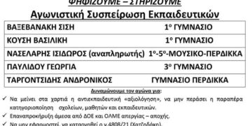 Read moreDetailsΤΡΙΤΗ 15 ΜΑΡΤΗ ΕΚΛΟΓΕΣ Δ.Σ. της ΕΛΜΕ (12:30-19:00) στο 2ο Γυμνάσιο Πτολεμαΐδας ΨΗΦΙΖΟΥΜΕ – ΣΤΗΡΙΖΟΥΜΕ Αγωνιστική Συσπείρωση Εκπαιδευτικών ΒΑΞΕΒΑΝΑΚΗ ΣΙΣΗ 1ο ΓΥΜΝΑΣΙΟ ΚΟΥΣΗ ΒΑΣΙΛΙΚΗ 1ο ΓΥΜΝΑΣΙΟ ΝΑΣΕΛΑΡΗΣ ΙΣΙΔΩΡΟΣ (αναπληρωτής) 1ο-5ο-ΜΟΥΣΙΚΟ-ΠΕΡΔΙΚΚΑ...