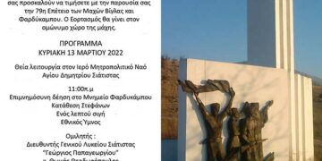 Read moreDetailsΟι φετινές εκδηλώσεις μνήμης του Ολοκαυτώματος των Σερβίων θα τελεστούν την Κυριακή 13 Μαρτίου 2022 (Κυριακή Της Ορθοδοξίας) στην Κεντρική Πλατεία Σερβίων. Τα μέτρα κατά του COVID-19 θα εξαρτηθούν από...