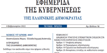 Read moreDetailsΔημοσιεύθηκε στο ΦΕΚ (4 Φεβρουαρίου 2022/Τεύχος πρώτο/Αρ. Φύλλου 16) ο νέος αναπτυξιακός νόμος 4887/2022 με τίτλο "Αναπτυξιακός Νόμος -Ελλάδα Ισχυρή Ανάπτυξη". Σύμφωνα με το Άρθρο 2 Αντικείμενο του παρόντος αποτελεί...