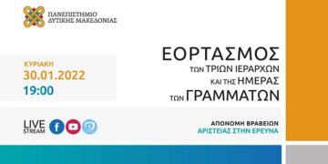 Read moreDetailsΣας προσκαλούμε στον Εορτασμό των Τριών Ιεραρχών και της Ημέρας των Γραμμάτων που θα πραγματοποιηθεί διαδικτυακά την Κυριακή 30 Ιανουαρίου 2022 και ώρα 19:00. Η εκδήλωση θα μεταδοθεί ζωντανά στη...