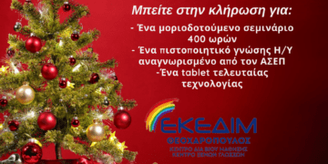 Το ΕΚΕΔΙΜ ΘΕΟΧΑΡΟΠΟΥΛΟΣ διοργανώνει ξεχωριστό Πρωτοχρονιάτικο διαγωνισμό. Τρείς τυχεροί θα κερδίσουν τρία μοναδικά δώρα : Ένα Μοριοδοτούμενο Σεμινάριο 400 ωρών Ένα Πιστοποιητικό γνώσης Η/Υ αναγνωρισμένο από τον ΑΣΕΠ Ένα Tablet...