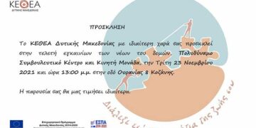 Read moreDetailsΤην Τρίτη 23 Νοεμβρίου 2021 και ώρα 13:00 θα πραγματοποιηθούν τα εγκαίνια των νέων δομών του ΚΕΘΕΑ Δυτικής Μακεδονίας, Πολυδύναμο Συμβουλευτικό Κέντρο και Κινητή Μονάδα στην οδό Ουρανίας 8 στην...