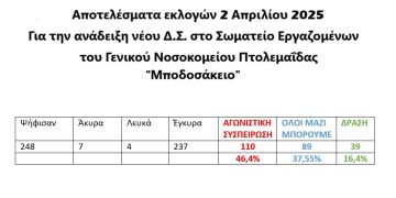 Read moreDetailsΗ Αγωνιστική Συσπείρωση Υγειονομικών του Γενικού Νοσοκομείου Πτολεμαΐδας «Μποδοσάκειο» χαιρετίζει τους εκατοντάδες συναδέλφους και συναδέλφισσες που πήραν μέρος μαζικά στις αρχαιρεσίες του Σωματείου Εργαζομένων του νοσοκομείου μας. Χαιρετίζουμε την απόφαση...