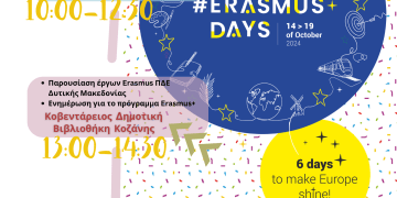 Read moreDetailsΗ Περιφερειακή Διεύθυνση Πρωτοβάθμιας και Δευτεροβάθμιας Εκπαίδευσης Δυτικής Μακεδονίας οργανώνει εκδήλωση με τίτλο “Erasmus Days 2024” την Τετάρτη 16 Οκτωβρίου 2024 στο πλαίσιο εορτασμού των Erasmus Days. Οι στόχοι...