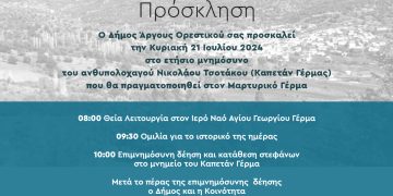 Read moreDetailsΛόγω της κλιματικής αλλαγής και του παρατεταμένου καύσωνα που πλήττει την Ελλάδα, ο Δήμος Άργους Ορεστικού σας καλεί να κάνετε λελογισμένη χρήση του νερού, προκειμένου να διασφαλιστεί η επάρκειά του...