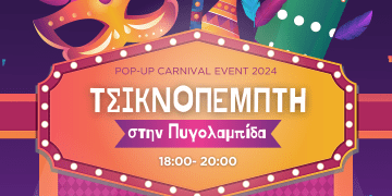 Read moreDetailsΤσικνοπέμπτη στην Πυγολαμπίδα σημαίνει ατελείωτο καρναβαλίστικο παιχνίδι, σπάσιμο πινιάτας,σουβλάκια και πολύ χορό, κάτω από τα πολύχρωμα φώτα! Φορέστε τις πιο ευφάνταστες στολές σας και ελάτε στην Πυγολαμπίδα για να ζήσετε...