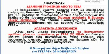 Read moreDetailsΗ Περιφερειακή Ενότητα Κοζάνης ΠΔΜ ως επικεφαλής εταίρος της Κοινωνικής Σύμπραξης ΤΕΒΑ που έχει συσταθεί για την Π.Ε. Κοζάνης σε συνεργασία με τους Δήμους Σερβίων και Βελβεντού θα πραγματοποιήσει διανομή...