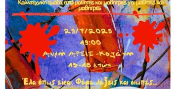 Read moreDetailsΗ ΑΡΣΙΣ Κοζάνης έχει τη χαρά να φιλοξενήσει στην αυλή του σπιτιού της, την Τρίτη 29 Ιουλίου 2025 και ώρα 19:00, το πρώτο δημόσιο βιωματικό εργαστήριο του εφηβικού καλλιτεχνικού σχήματος...