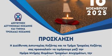 Read moreDetailsΤην Κυριακή 16 Νοεμβρίου 2025 και ώρα 11:00΄θα πραγματοποιηθεί Δρόμος Μνήμης Επίσης, την ίδια ημέρα και ώρα 12:30΄ θα ακολουθήσειεκδήλωση στην Στέγη Ποντιακού ΠολιτισμούΗ Διεύθυνση Αστυνομίας Κοζάνης και το Τμήμα...
