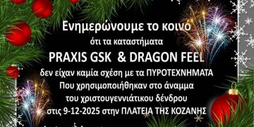 Καυκαλής Αθανάσιος: Οι επιχειρήσεις «Praxis GSK» και «Dragon Feel» στην Κοζάνη δεν έχουν καμιά σχέση με τα πυροτεχνήματα που άναψαν στην κεντρική πλατεία της Κοζάνης την Τρίτη το βράδυ 9...