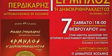 Read moreDetails"Την Τετάρτη 4/2/2026, στις 19:00 ο σύλλογος Κοινόν των Κοζανιτών και το διαδικτυακό περιοδικό "Τα παιδιά της γαλαρίας" (https://tapaidiatisgalarias.wordpress.com/) οργανώνουν στο μουσείο Σύγχρονης Τοπικής Ιστορίας "Νίκος Καλογερόπουλος" την δεύτερη εκδήλωση...
