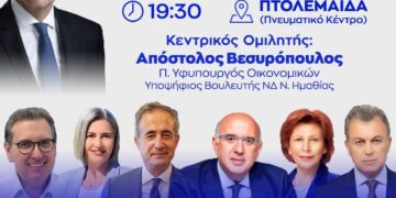 Read moreDetailsΠΡΟΣΚΛΗΣΗ Η Δ.Ε.Ε.Π. ΝΔ Π.Ε. Κοζάνης, διοργανώνει προεκλογική εκδήλωση στο Δήμο Εορδαίας, την Τετάρτη 14 Ιουνίου στις 19:30 στο Πνευματικό Κέντρο Πτολεμαΐδας. Κεντρικός Ομιλητής της εκδήλωσης θα είναι ο κύριος...