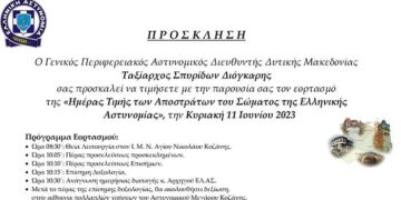 Σας ενημερώνουμε ότι την Κυριακή, 11 Ιουνίου 2023 και ώρα 10.15΄, στον Ιερό Μητροπολιτικό Ναό Αγίου Νικολάου Κοζάνης, θα τελεσθεί Δέηση, για τον εορτασμό της «Ημέρας Τιμής των Αποστράτων του Σώματος της Ελληνικής Αστυνομίας». Μετά...