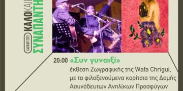 Το ΚΑΛΟκαρινό Συναπάντημα της Πέμπτης 8 Ιουνίου, φιλοξενεί από τις 20:00 την έκθεση ζωγραφικής της Wafa Chrigui με τα φιλοξενούμενα κορίτσια της Δομής Ασυνόδευτων Ανηλίκων Προσφύγων Πενταλόφου Δήμου Βοΐου, με...