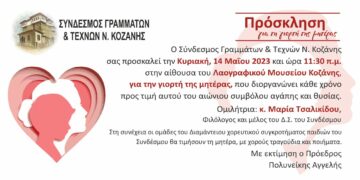 Read moreDetailsΟ Σύνδεσμος Γραμμάτων και Τεχνών Ν. Κοζάνης σας προσκαλεί την Κυριακη,14 Μαΐου 2023 και ώρα 11.30 π.μ στην αίθουσα του Λαογραφικού Μουσείου Κοζάνης για την γιορτή της μητέρας, που διοργανώνει...