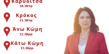 Read moreDetailsΗ υπ. Βουλευτής ΣΥΡΙΖΑ Π.Σ. Π.Ε. Κοζάνης κ. Καλλιόπη Βέττα, αύριο 14/5, θα επισκεφτεί πρωινές ώρες την Καρυδίτσα, τον Κρόκο, την Άνω και Κάτω Κώμη, την Μηλιά και απογευματινές ώρες...